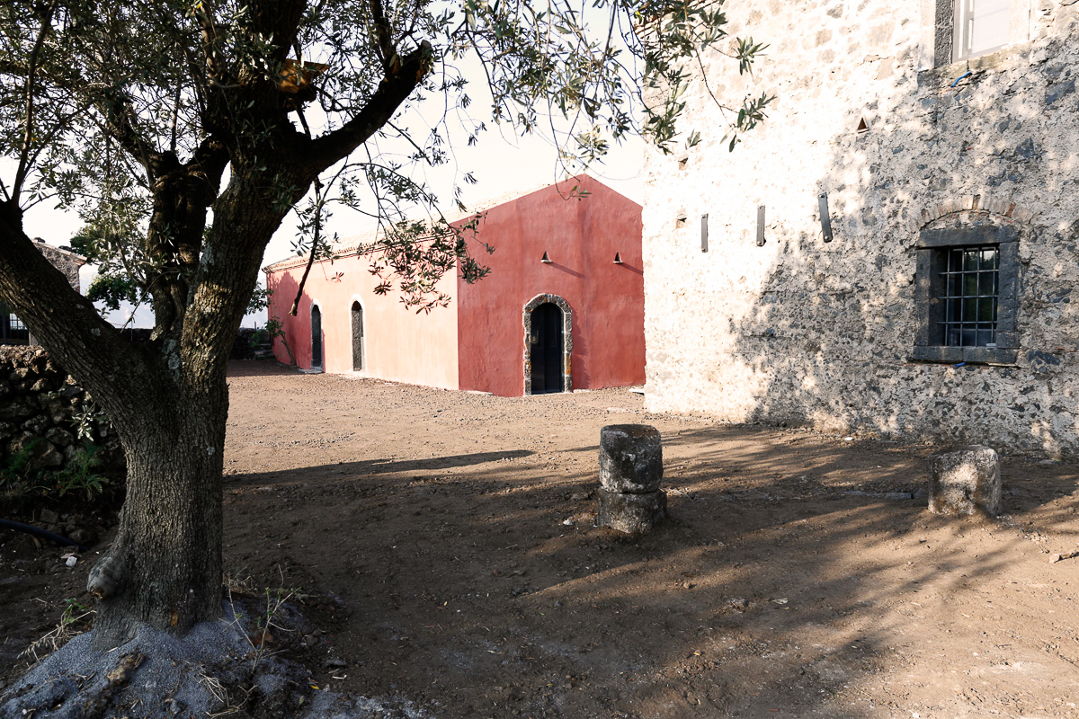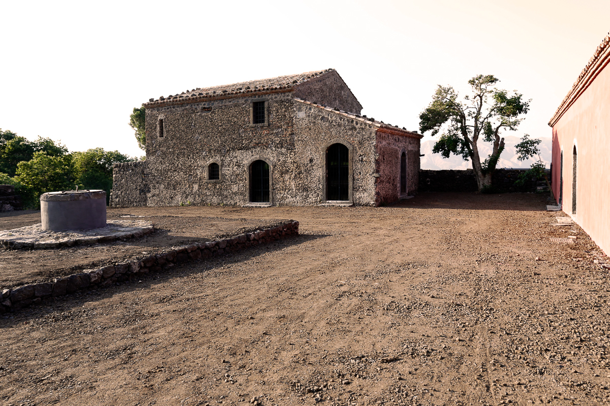 L’area di intervento si trova a 870 metri sul livello del mare, all’interno del Parco dell’Etna, con una vista spettacolare che abbraccia il vulcano Etna da un lato e i paesaggi dei Nebrodi e Peloritani dall’altro. Il recupero degli edifici è stato progettato per ridare vita alla storicità del luogo, preservando l’impianto planivolumetrico originale e ricostruendo le altezze degli edifici preesistenti.