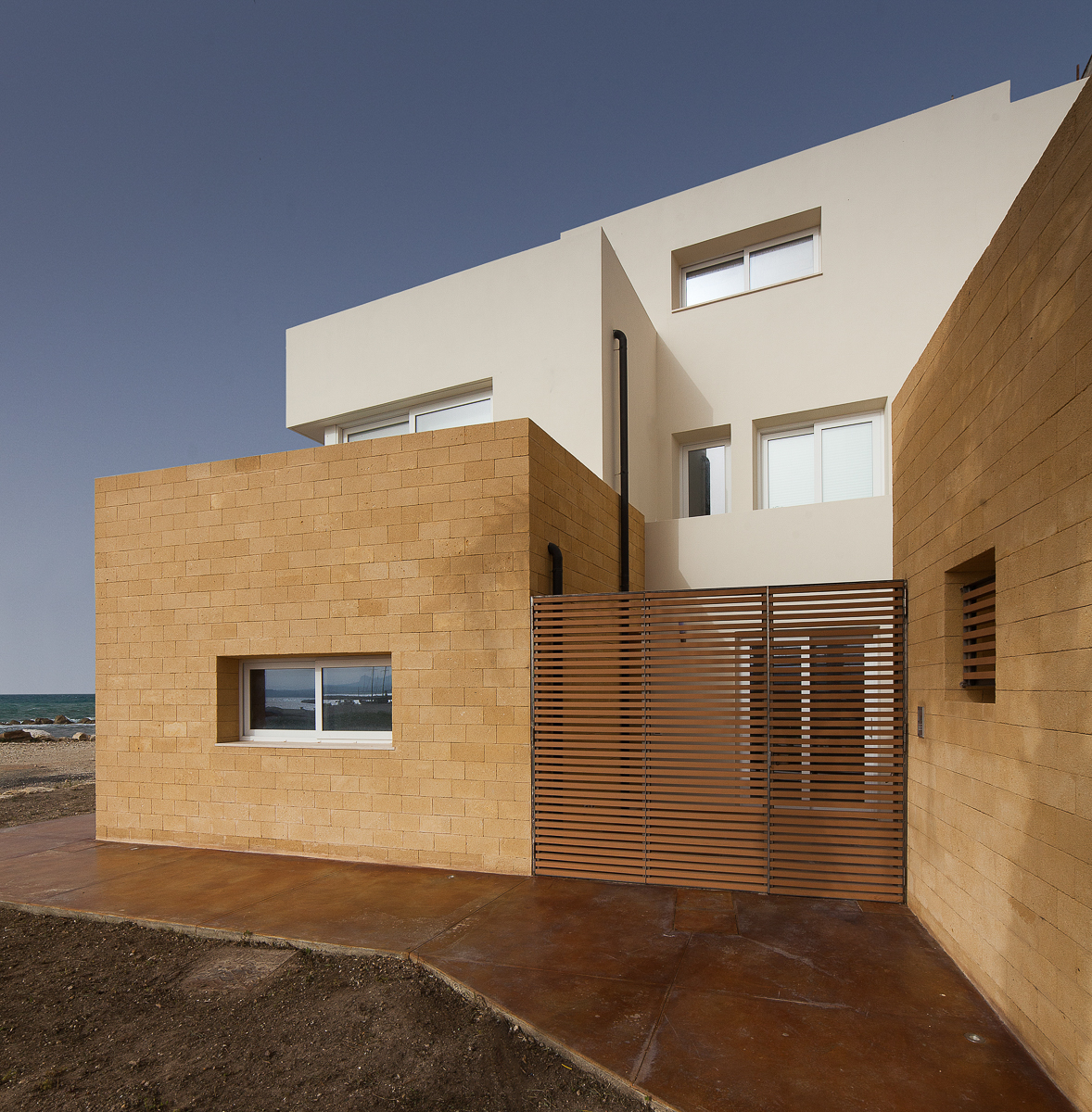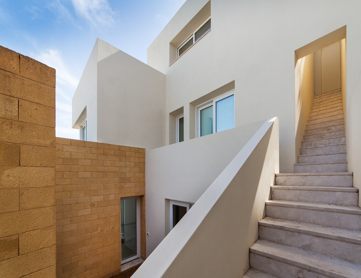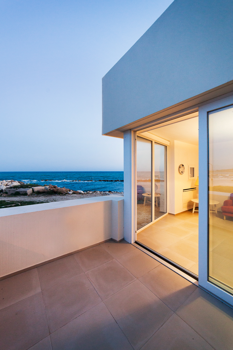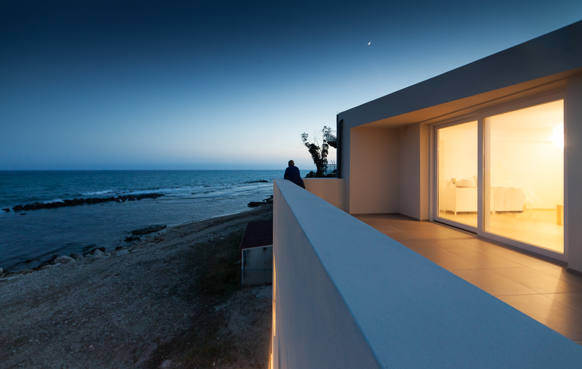 Il design dell’edificio è costruito su un impianto che prevede la sovrapposizione e rotazione dei corpi architettonici. In particolare, le tre elevazioni fuori terra mostrano una progressiva “smaterializzazione” dei volumi, creando un gioco di spazi e trasparenze. Le ampie bucature, infatti, si aprono sul patio interno e sui terrazzi, proiettati verso il Mar d’Africa, regalando splendide viste panoramiche.